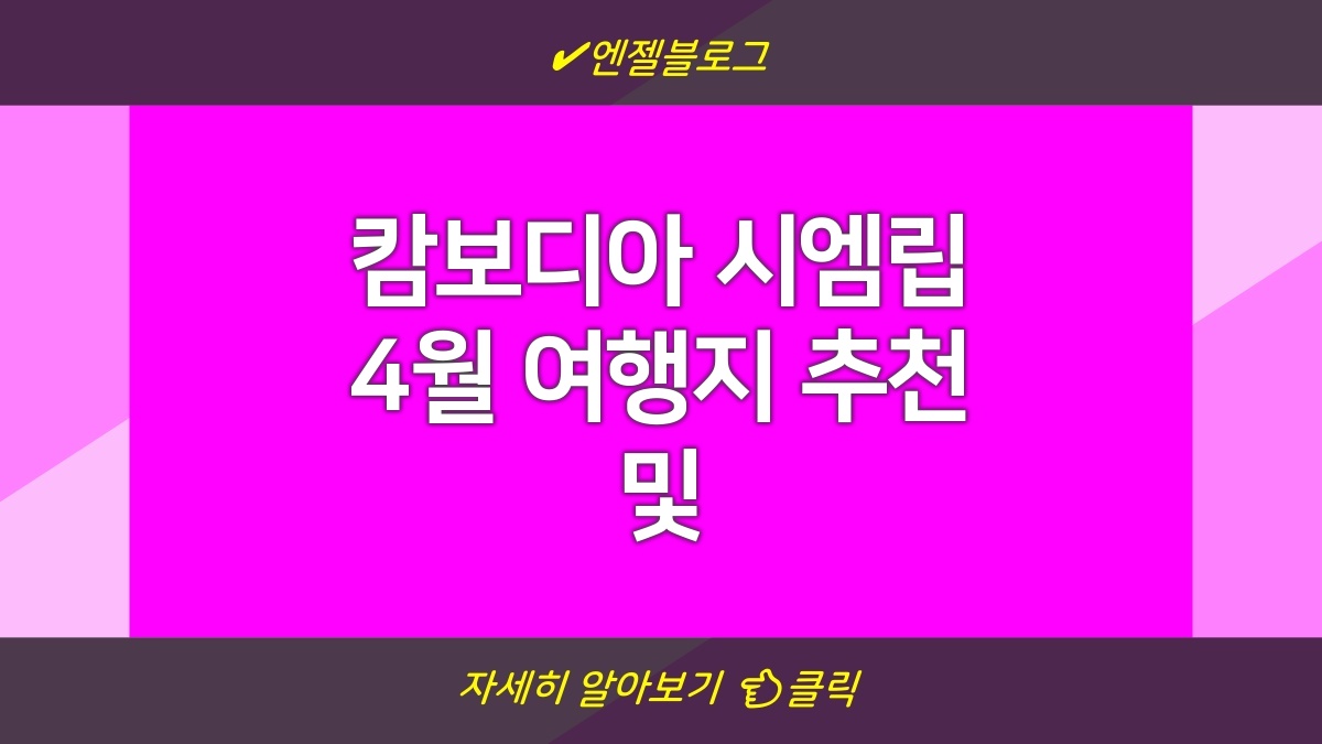 캄보디아 시엠립은 아름다운 유적지와 다채로운 문화로 유명한 여행지입니다. 특히 4월은 날씨가 덥지만, 다양한 축제와 행사로 관광객들이 많이 방문하는 시기입니다. 이곳의 대표적인 관광지는 앙코르와트, 타 프롬 사원 등이며, 각각의 역사적 배경과 웅장한 건축이 많은 이들에게 감동을 줍니다. 또한, 시엠립의 전통 시장에서 현지 음식을 맛보거나, 지역 사람들과의 소통을 통해 더 깊이 있는 여행 경험을 할 수 있습니다. 시엠립을 여행하기 전에는 필요한 준비물을 체크하고, 여행 정보를 미리 알아두는 것이 좋습니다.