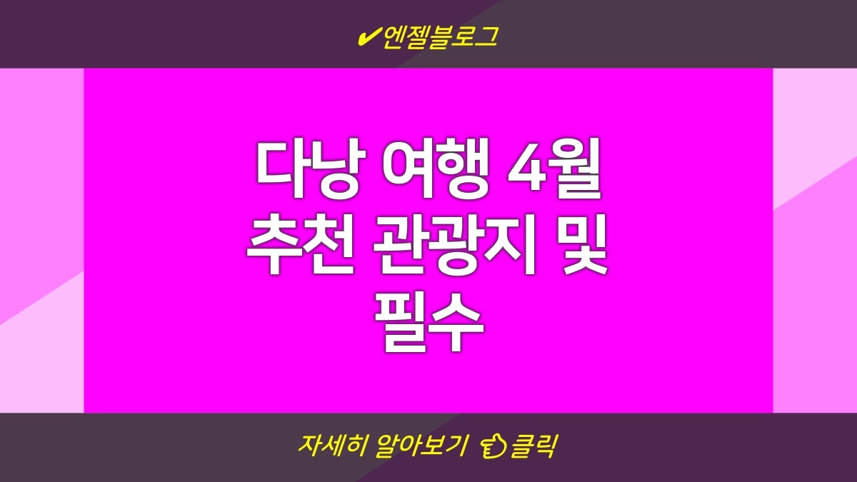 다낭은 정말 다양한 매력을 가진 곳이야. 4월에 가면 날씨가 좋고, 볼거리가 많아서 여행하기 딱이야. 각 관광지에서 느끼는 특별한 순간들, 맛있는 음식, 다양한 문화 체험이 다낭을 특별하게 만들어줄 거야. 여행 준비를 잘해서 멋진 추억을 만들고 오길 바라. 다낭에서의 모든 순간이 너에게 행복으로 가득하길!
