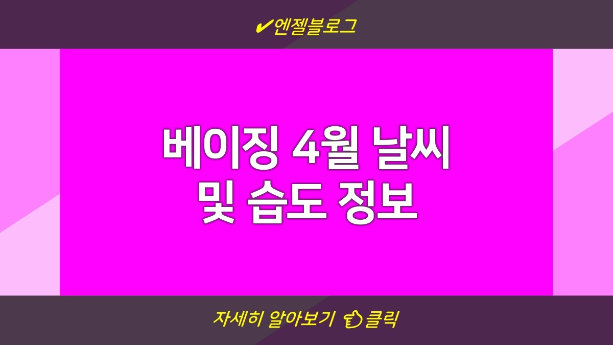 베이징의 4월은 평균적으로 습도가 낮아서 오히려 기분 좋게 느껴질 수 있어. 하지만 낮은 습도가 체감 온도에 영향을 미칠 수 있어, 더욱 따뜻하게 느껴질 수도 있지. 장시간 밖에 있을 계획이라면 충전기나 추가 물도 챙기면 좋겠어. 날씨에 대비한 정보가 중요해.