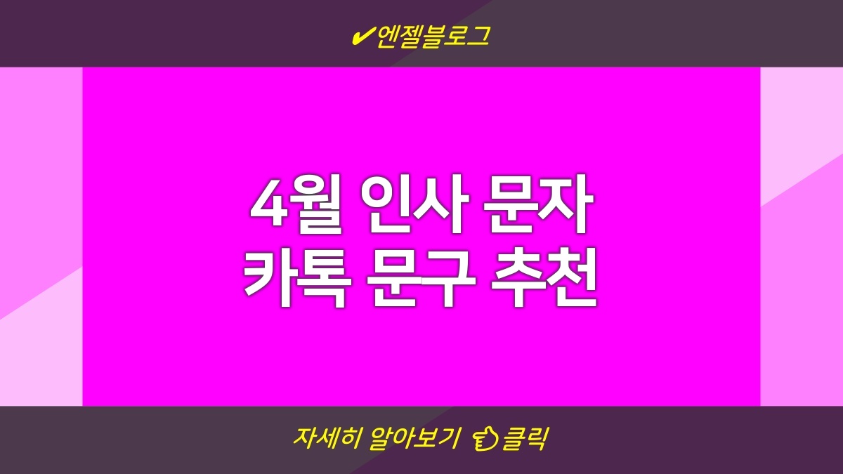4월이 되면 만개하는 봄꽃처럼 따뜻한 마음을 전할 수 있는 인사 문구를 보내는 게 좋을 것 같음. 친구나 가족, 직장 동료에게도 간단한 카톡 메시지로 새롭게 시작하는 한 달을 환영하는 인사를 해보자고. 이런 메시지는 늘 따뜻하고 기분 좋게 해주니까. 참고할 만한 문구 몇 개 소개할게. 모두 간단하니 꼭 사용해봐. ㅎㅎ