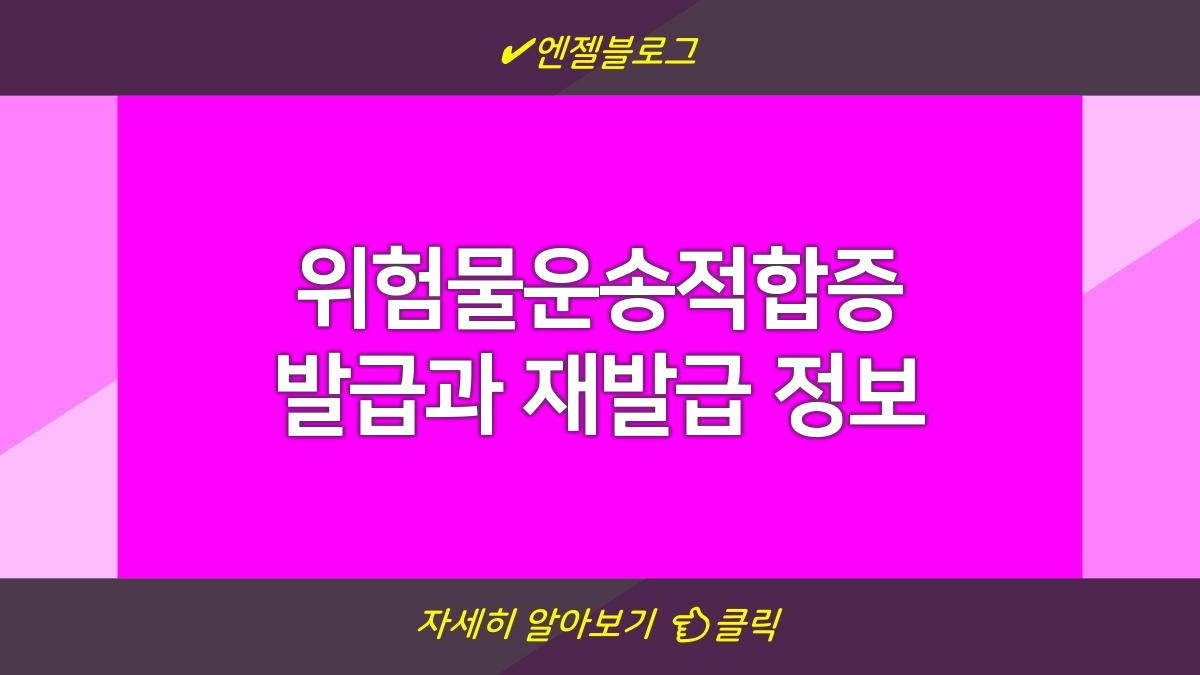위험물운송적합증 발급과 재발급에 관한 내용에 대해 알려줄게. 위험물운송은 안전이 최우선이라서 관련 인증이 필요하거든. 이 인증을 발급받으려면 몇 가지 절차를 따라야 해. 특히 재발급을 원할 경우 기존 인증서의 유효성이 중요하니까 잘 확인해야 해. 이 과정에서 어떤 서류가 필요한지도 알아야 해. 자세히 설명할게.