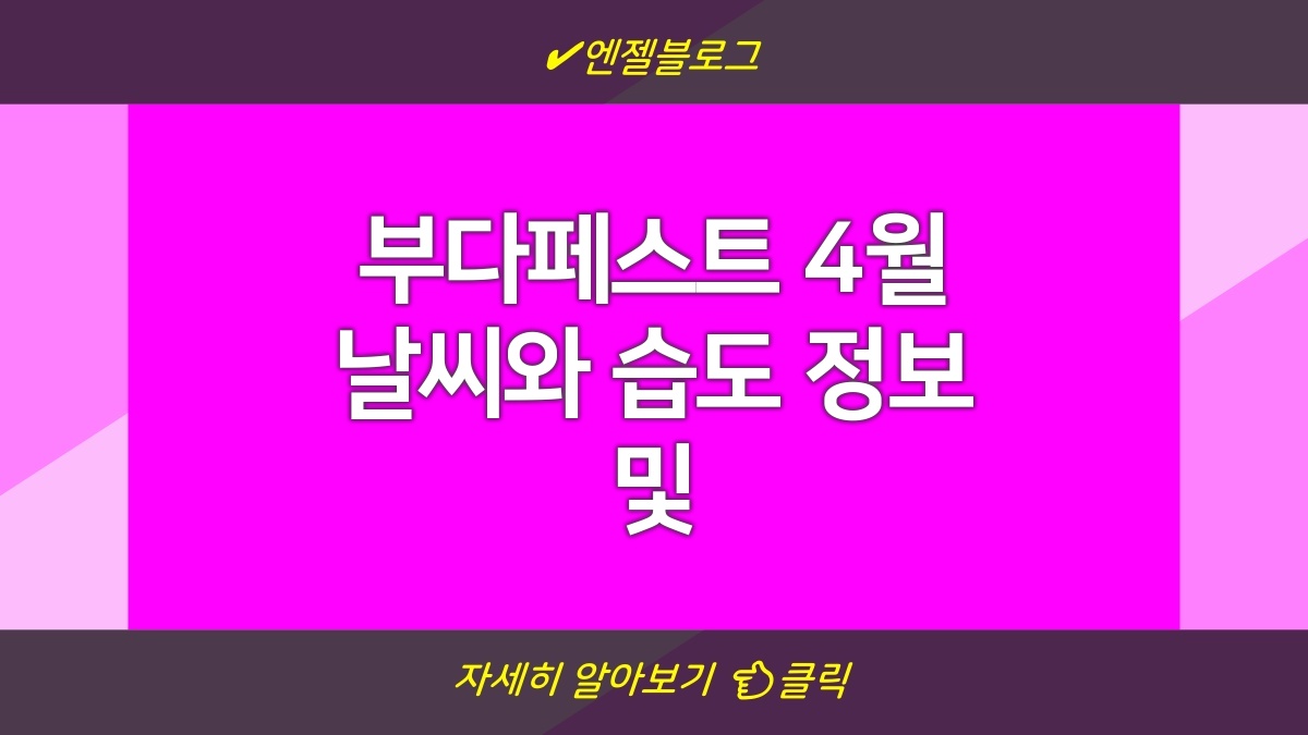 헝가리의 수도 부다페스트는 4월에 아름다운 봄 날씨를 경험할 수 있습니다. 평균 기온은 10도에서 20도 사이로, 온화한 날씨가 지속됩니다. 하지만 이 시기에는 일교차가 크기 때문에 일부러 겹겹이 옷을 겹쳐 입는 것이 좋습니다. 또한, 부다페스트의 4월은 습도가 상승하는 경향이 있어, 가끔씩 비가 내릴 수 있으므로 우산이나 가벼운 방수 외투를 준비하는 것이 바람직합니다.