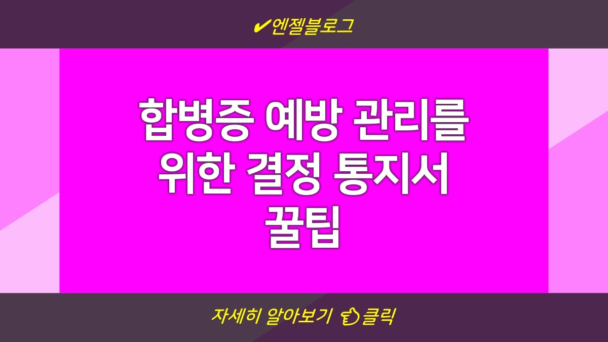 합병증 예방은 다양한 질병 관리에 있어 핵심적인 부분이야. 이 통지서는 합병증의 예방과 관리에 대한 내용을 안내하고, 필요한 행정 절차를 알려줘. 이런 예방 관리를 통해 건강한 삶을 유지할 수 있게 도와줘. 꼭 확인해야 할 사항들이 많으니 잘 읽어보길 바랄게. 다양한 정보를 제공해서 이해를 돕는 것이 목표야. 건강 관리를 위한 작은 노력이 나중에 큰 변화를 만들어낼 수 있거든. 잘 참고하고 활용하길 바래.