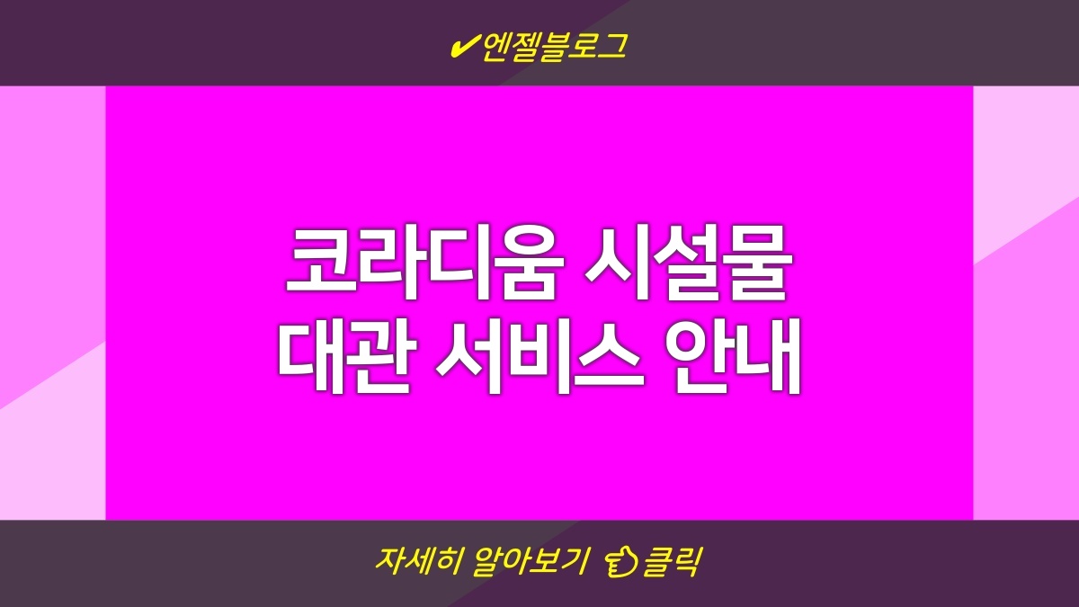 코라디움 시설물 대관 서비스라는 게 있다. 여러 유형의 행사와 모임을 위한 장소를 제공해주고 있는 곳이라서 이용해보면 좋을 듯. 덕분에 비교적 저렴한 가격으로 다양한 시설을 활용할 수 있다. 특히 워크숍, 세미나, 회의 등 다양한 형태의 행사에 맞는 장소가 많으니까 선택의 폭이 커서 진짜 편리하다. 이런 점이 많은 사람들에게 선호받는 이유 중 하나인 듯. 행사 계획 중이라면 한번 체크해보는 게 좋겠지. 지원이나 문의 사항도 많으니 궁금한 게 있으면 언제든지 물어보면 좋고.
