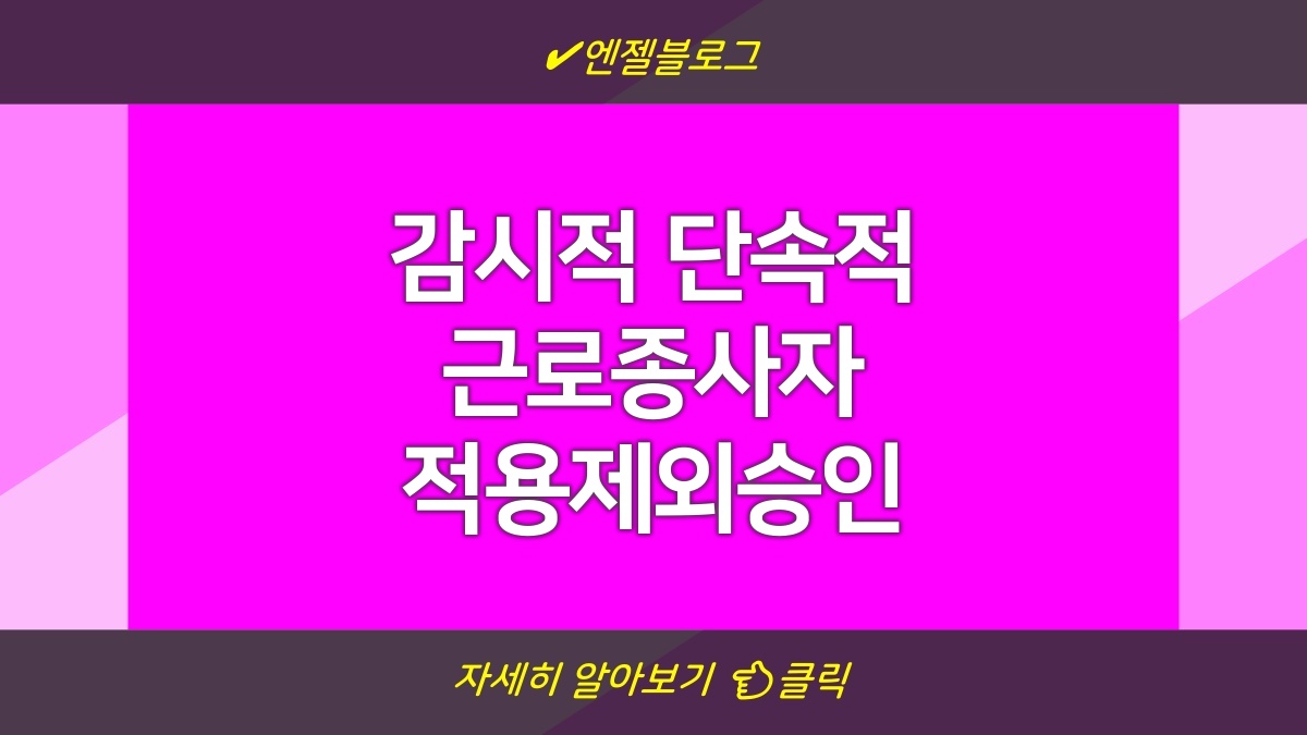 적용 제외 승인은 특정 근로 조건을 충족하는 근로종사자에게 부여되는 특혜라고 보면 좋을 거임. 여기서 감시적 단속적 근로종사자는 주로 건설 현장, 보안, 또는 특정 서비스 업종의 직원들이 해당되며, 이들은 보통 근무 형태와 시간이 일정하지 않아서 일반 근로 기준이 적용되지 않을 수 있음. 이해가 되지 않는 부분이 있다면 관련 정보를 꼭 찾아보는 게 좋음.